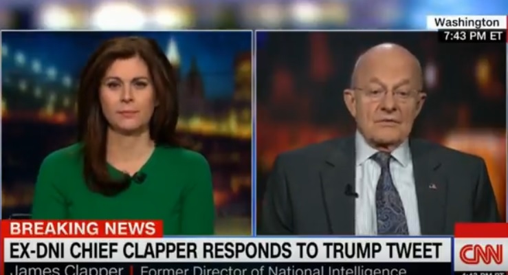 Clapper made the suggestion on Friday about his "evil twin" lying instead of him on CNN during an interview with Erin Burnett. Because President Donald Trump tweeted about Clapper's inconsistent testimony about his media contacts, Burnett had no choice but to ask him about it.