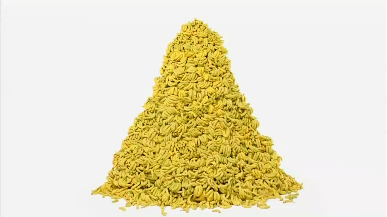 The 30-second spot had most of the same trademarks from the first ad back in October 2017 with the same narrator, white background, and piano tune. This time, however, there was a giant mound of bananas with only the top showing as the camera slowly panned back and bananas would, at random, fall down the mound towards the bottom.
