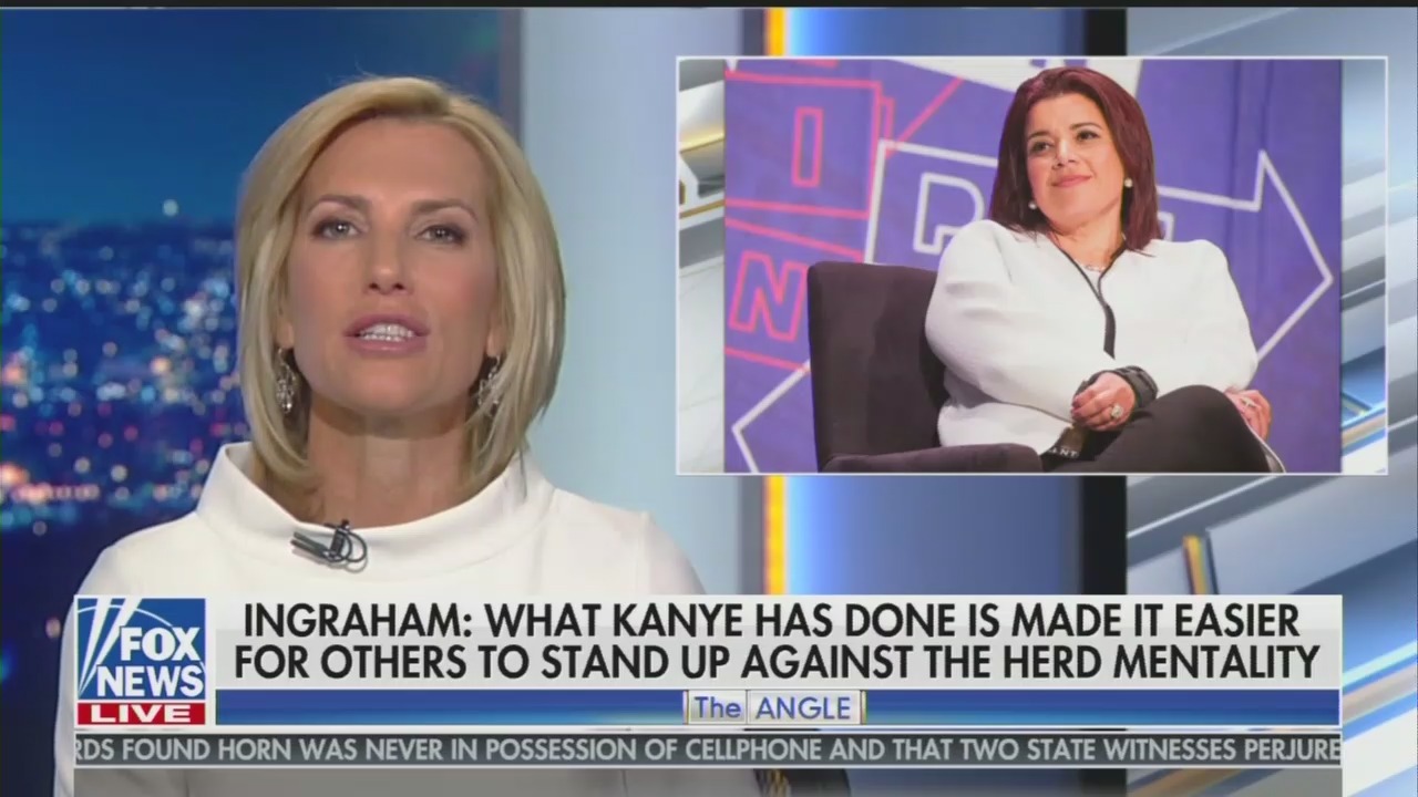 Ingraham titled her monologue Thursday evening, which she calls “The Angle,” “The New Counter-Culture,” arguing that West’s decision to make supportive statements of President Trump in the overwhelmingly anti-Trump pop culture may serve as “the catalyst for an honest discussion about the coerced conformity of thought that the celebrity culture has imposed on all of us.”