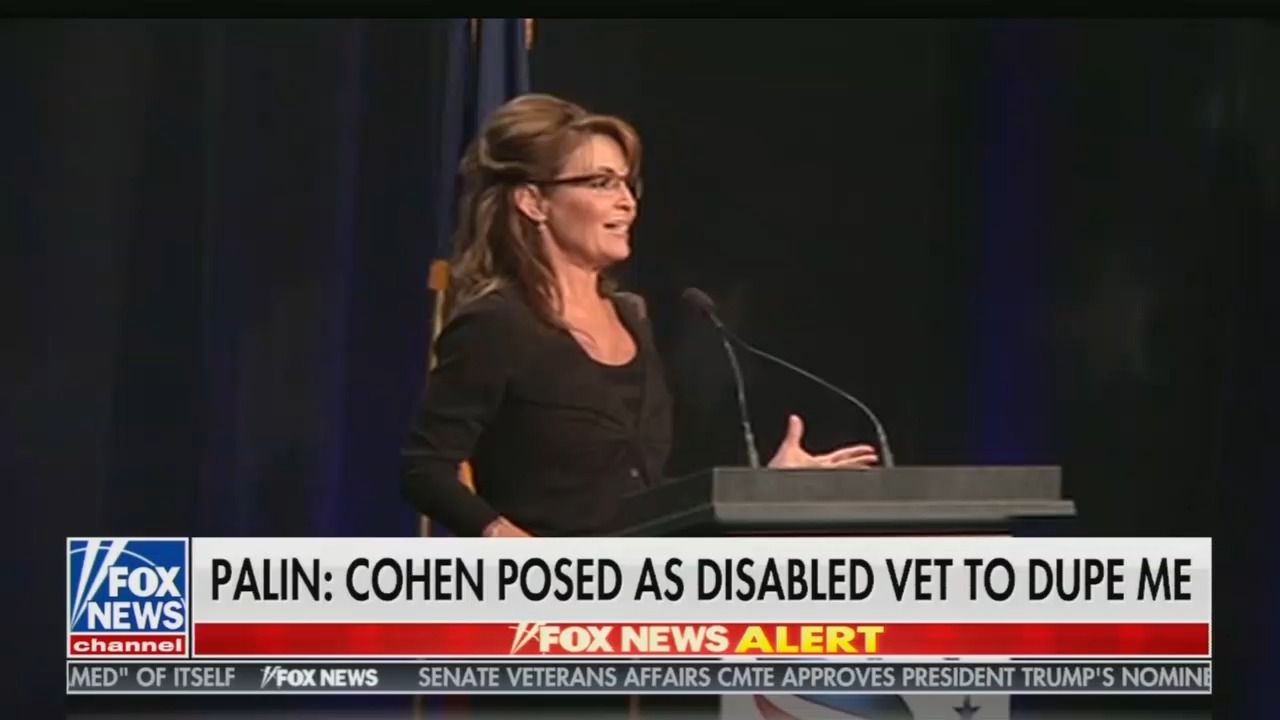 Fox News recounted Palin’s response on her Facebook page: “I join a long list of American public personalities who have fallen victim to the evil, exploitive, sick ‘humor’ of the British ‘comedian’ Sacha Baron Cohen, enabled and sponsored by CBS/Showtime.”