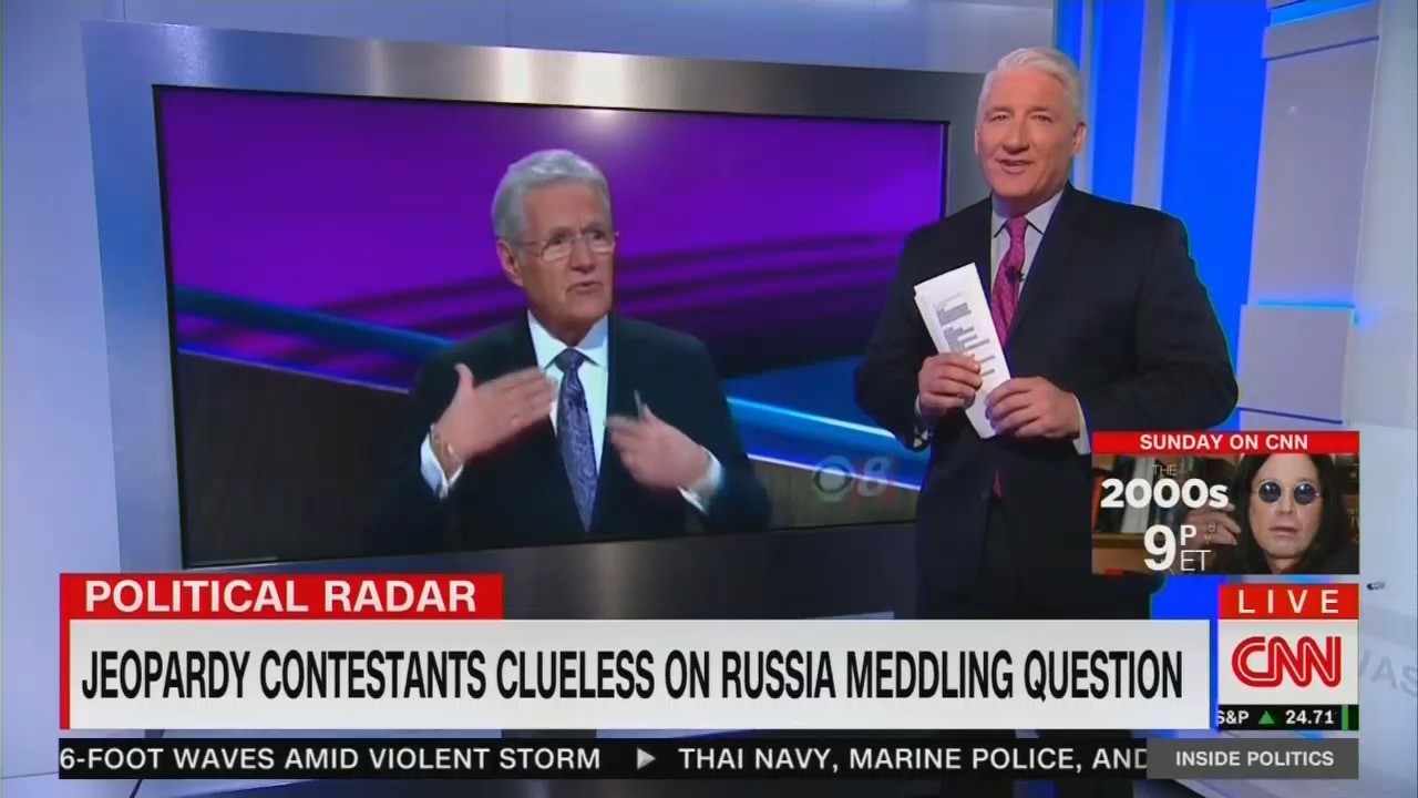 JOHN KING: And I'll take Russia meddling for a thousand, Alex. Only the smartest of the smart get to be on Jeopardy, right? So what does this little exchange last night say about the nation's focus, or lack thereof, on the whole [Robert] Mueller Russia meddling and collusion investigation?"