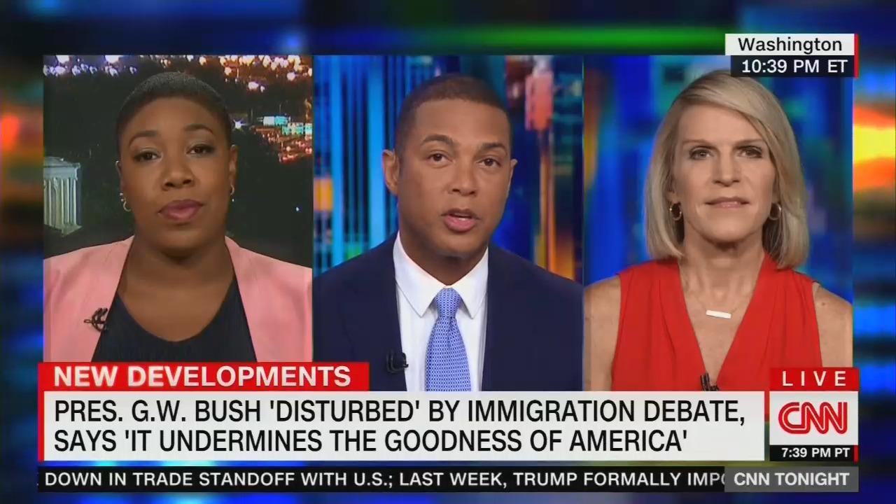 The segment began with host Don Lemon trying to use former President George W. Bush to undermine President Donald Trump's efforts to curtail illegal immigration as a clip of the former President was played expressing concerns about children being separated from illegal parents.