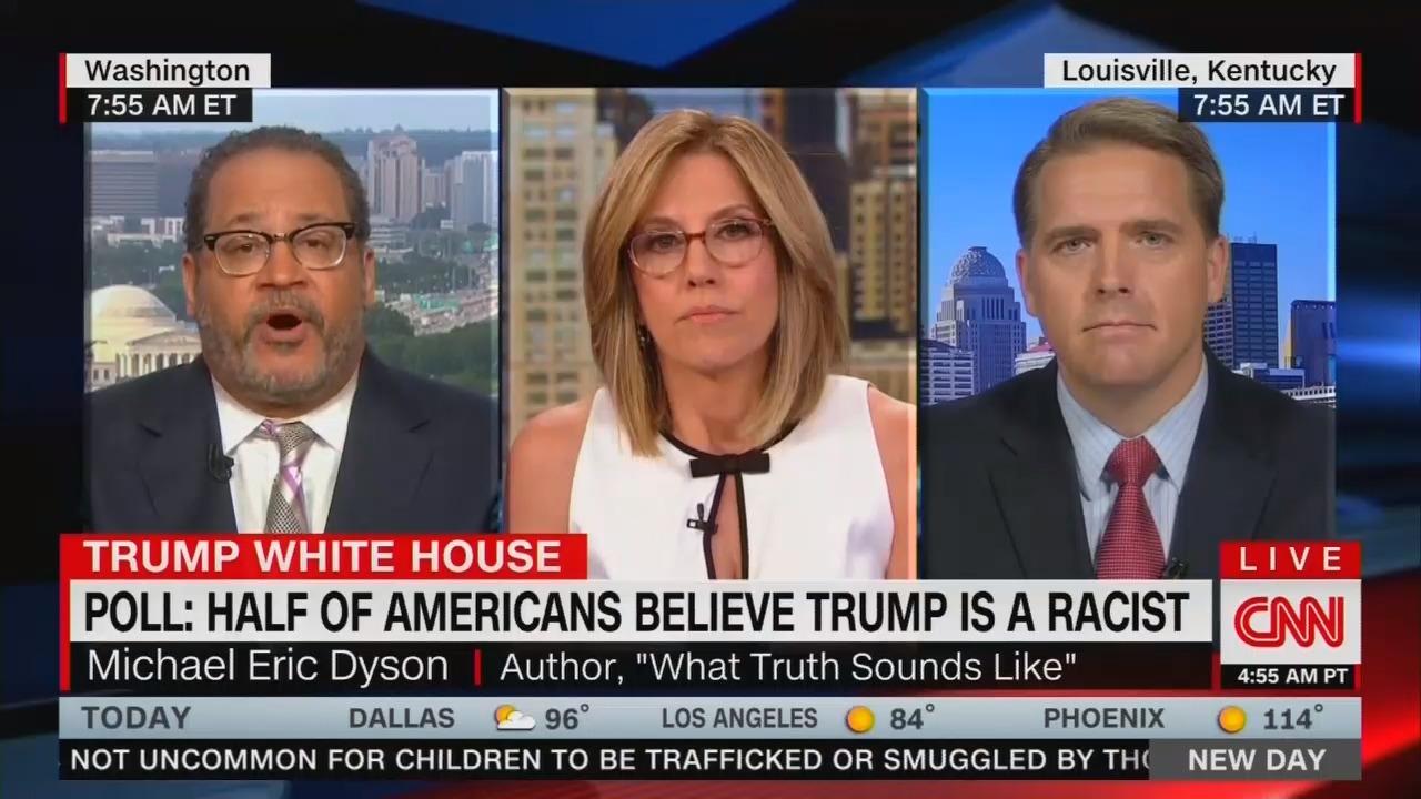 On Thursday’s edition of New Day, the CNN morning show co-host Alisyn Camerota invited former George W. Bush advisor Scott Jennings and left wing political commentator Michael Eric Dyson on to discuss a recent poll that found half of all Americans believe President Trump is racist. What followed was a series of hyperbolic pronouncements that have come to define Dyson’s appearances on television.