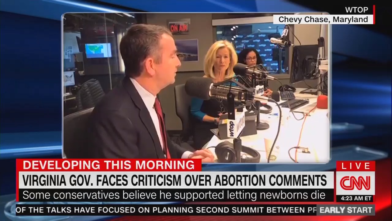 After initially ignoring the controversy surrounding Virginia Democratic Governor Ralph Northam suggesting it would be both legal and acceptable under a proposed new abortion law if a baby were delivered and then allowed to die outside the mother's body, CNN finally ran a few briefs on Thursday morning -- mostly early -- and MSNBC ran one.