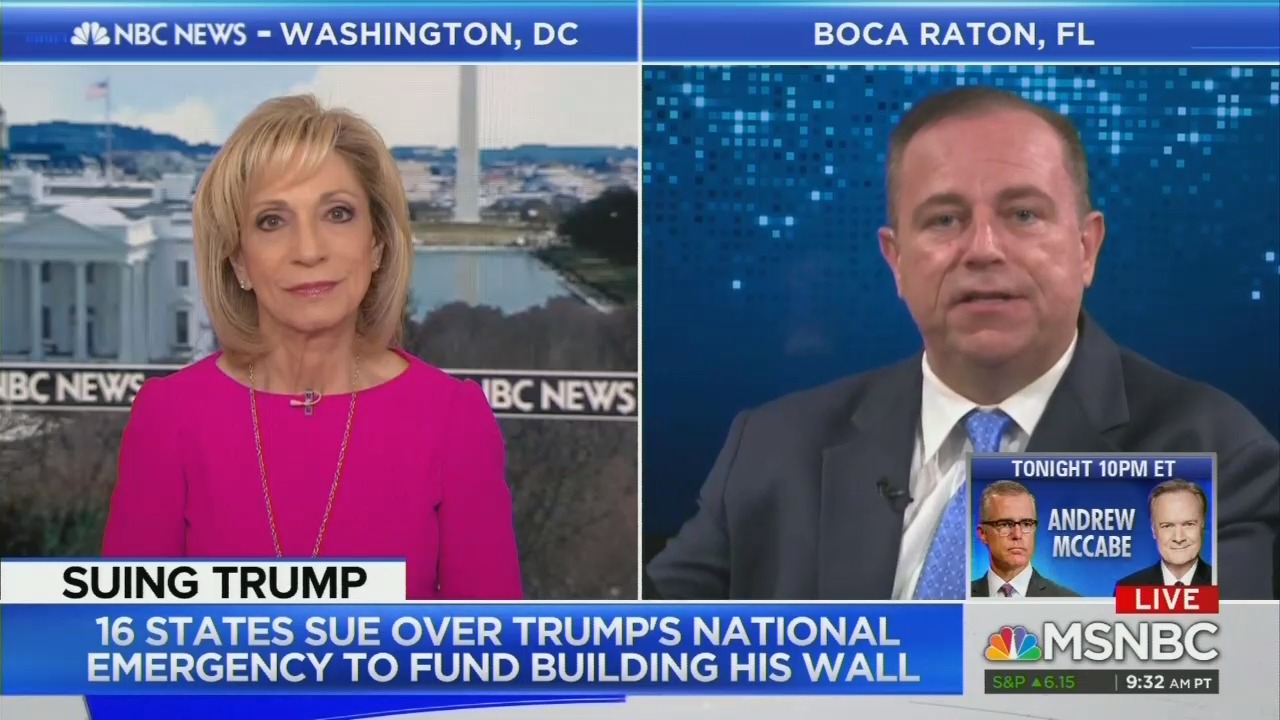 ANDREA MITCHELL: Joining me now, long time Trump confidant Chris Ruddy, CEO of Newsmax media, thanks very much Chris, for being with us. The President had just made this emergency declaration, he had gone to Mar-a-Lago. He's being criticized on many sides. Was he -- what was his mood, I guess is the main question?
