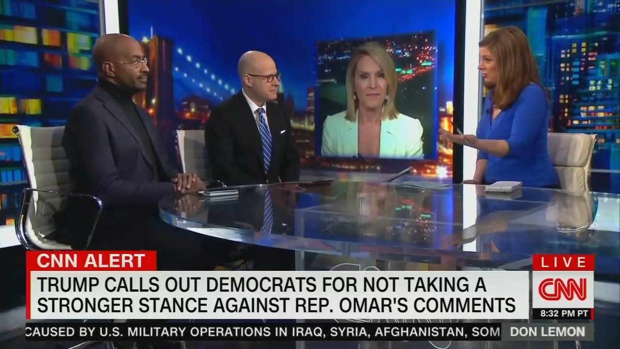 The issue arose in the show’s final block, but like the previous discussion, it made clear that anti-Semitism from neo-Nazis and white supremacists should be the real discussion (versus Omar). CNN must have been fearful of being accused of being Islamophobic.