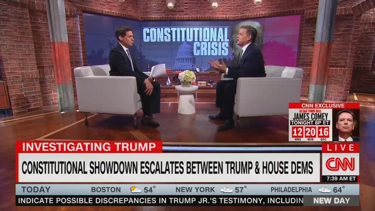 Appearing on CNN’s New Day Thursday, CNN Presidential historian Douglas Brinkley echoed Jerry Nadler’s rhetoric, declaring that “we’re hovering on a Constitutional crisis” as a result of the standoff between House Democrats and Attorney General Bill Barr. Brinkley went so far as to argue that the election of President Trump was a “constitutional crisis” in and of itself while both Berman and Brinkley could not resist the urge to invoke Watergate comparisons.