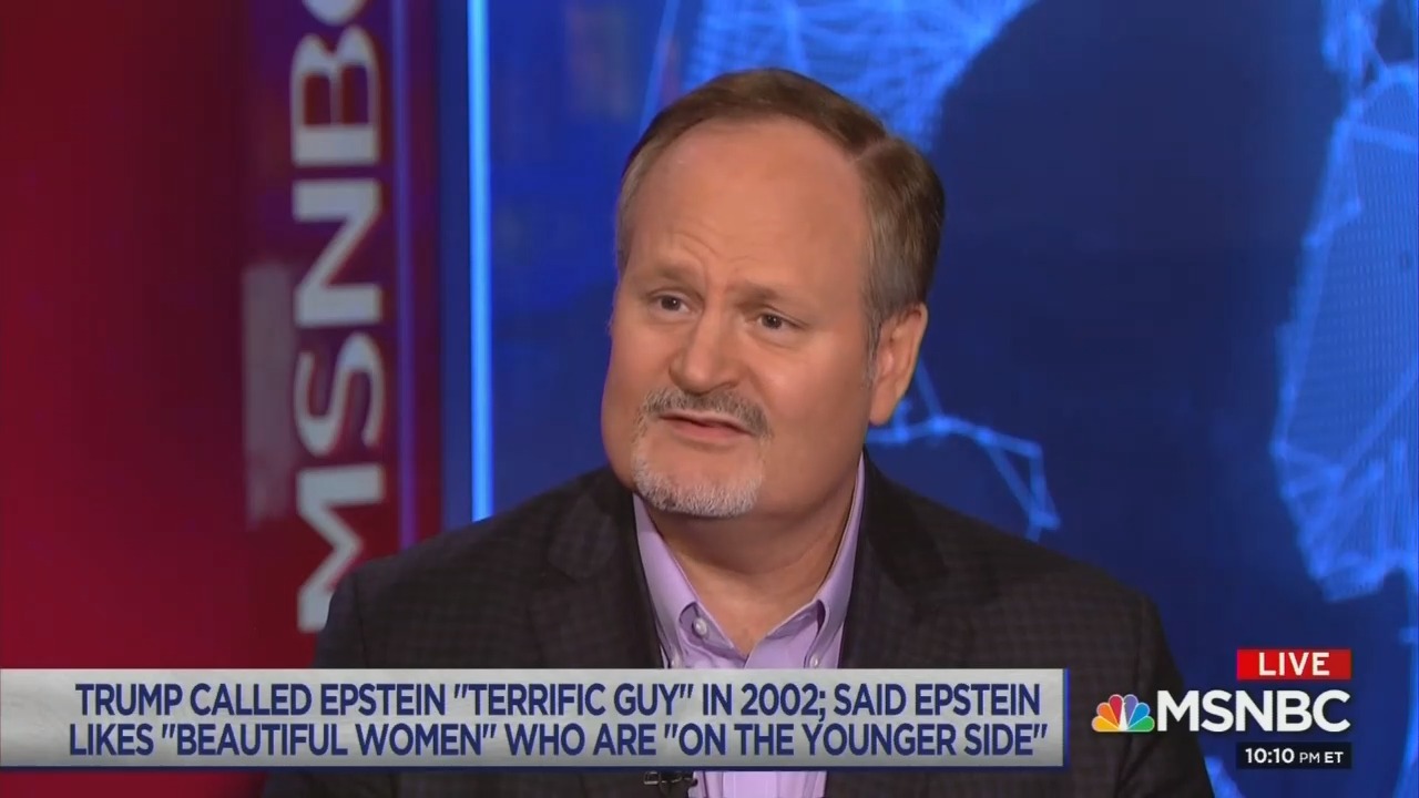 LAWRENCE O’DONNELL: Now, sometimes the indictment of an old friend of Donald Trump's for sex trafficking has nothing to do with Donald Trump, but this is not one of the times. Because the Florida federal prosecutor who made a very forgiving deal with Jeffery Epstein on similar charges that allowed Epstein to avoid prison is now Donald Trump’s Secretary of Labor. Now we have no idea tonight whether William Barr would have blocked this prosecution of Jeffery Epstein if he had not decided to recuse himself from the case, we don’t know whether William Barr would have saved President Trump from the problem of now having to deal with Labor Secretary Alex Acosta’s decision to let Jeffrey Epstein off the hook for the same kind of conduct that the U.S. Attorney in the southern district of New York just indicted Jeffrey Epstein for. Here's what Donald Trump said about his old friend, Jeffrey Epstein in 2002: “I have known Jeff for 15 years. Terrific guy. He’s a lot of fun to be with. It is even said that he likes beautiful women as much as I do, and many of them are on the younger side. No doubt about it, Jeffrey enjoys his social life.” On the younger side. Donald Trump knew about Jeffrey Epstein and what Donald Trump called "the younger side." "Terrific guy," that's what Jeffrey Epstein was to Donald Trump, "terrific guy." To this day Donald Trump has not said a negative word about Jeffrey Epstein. Donald Trump has attacked the leaders of countries that are our strongest allies, Donald Trump has attacked Congressman Justin Amash this weekend for leaving the Republican Party, Donald Trump has attacked Elizabeth Warren, Joe Biden, Chuck Schumer, he's attacked me. Donald Trump attacked hundreds and hundreds and hundreds and thousands of people but he has never once said a single negative word about Jeffrey Epstein, not one word. Jeffrey Epstein did not see it coming when his private plane took off from Paris.