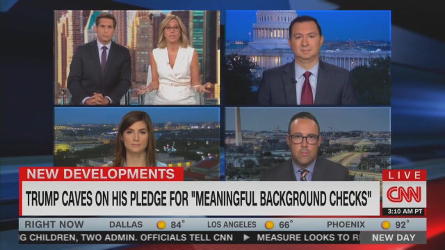 ALISYN CAMEROTA: I think that it is really helpful to know, finally, how the President and Republicans in the Senate feel about guns and about whether there are any solutions. I think it’s very helpful for Americans to know: this is as good as it gets. This is all, this is all you can ever hope for. They’re not presenting any solutions, they don’t feel like coming back from August recess to figure it out. The President has backtracked again. So we have to believe this is his real position.