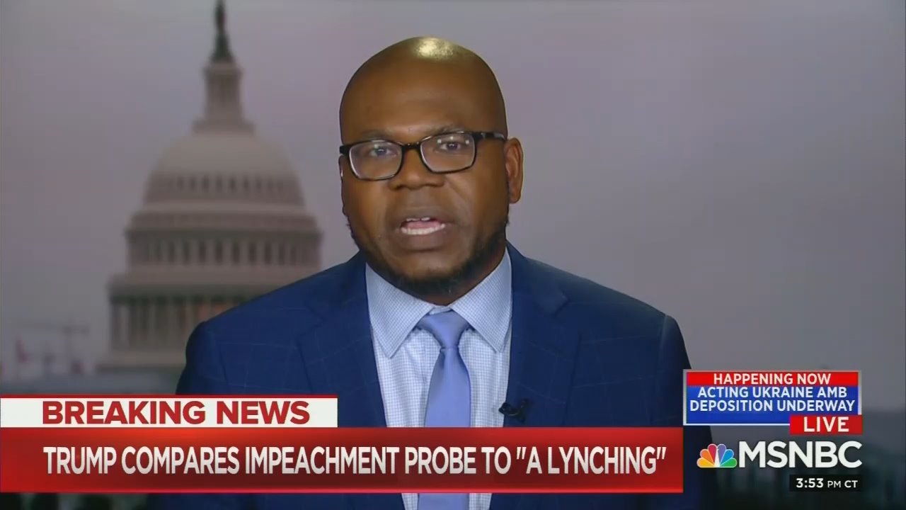 JASON JOHNSON, MSNBC CONTRIBUTOR: I'm not surprised. This is what the President does, but I think, in the grander scheme of things, I'm old enough to remember when we had a Supreme Court justice who referred to him being asked questions, Clarence Thomas, as the "high-tech lynching of an uppity black man." It's always been fascinating to me that Republican parties and the far right in this country who were primarily responsible for massive domestic terrorism and lynching of black people in this country purely for the fact that we were trying to vote are always the first people to invoke that imagery when they are being held accountable for their behavior.