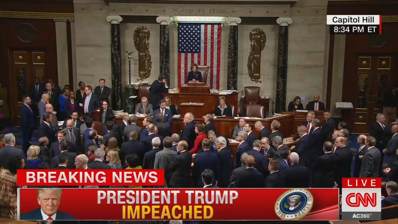 JOHN KING: And as Jake noted, almost two Americas, two parties, two views. The Democrats have the facts on their side about what the President did, what the conduct was. The Republicans didn't really try to rebut that. A few of them did try to make the case it wasn't impeachable. Very few. Most of it was just complaining about the process, but this is -- this will go on to the senate. Then it will go to the voters, assuming the votes stay in the Senate like we think. However this ends up to the point being, this is history. This is an indelible stain on the record, the legacy of Donald Trump. We covered the Clinton White House when this happened. Bill Clinton was president at the time, this country had an operating surplus. The last time the United States government ran an operating surplus, a booming economy like we have a great economy what is the first sentence when people talk about Clinton? He was impeached. That will be the case for Donald Trump no matter how this turns out.