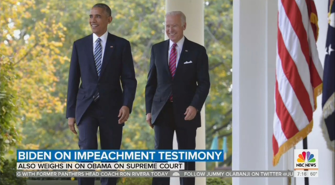 [ON-SCREEN HEADLINE: Biden on Impeachment Testimony; Also Weighs in on Obama on Supreme Court]