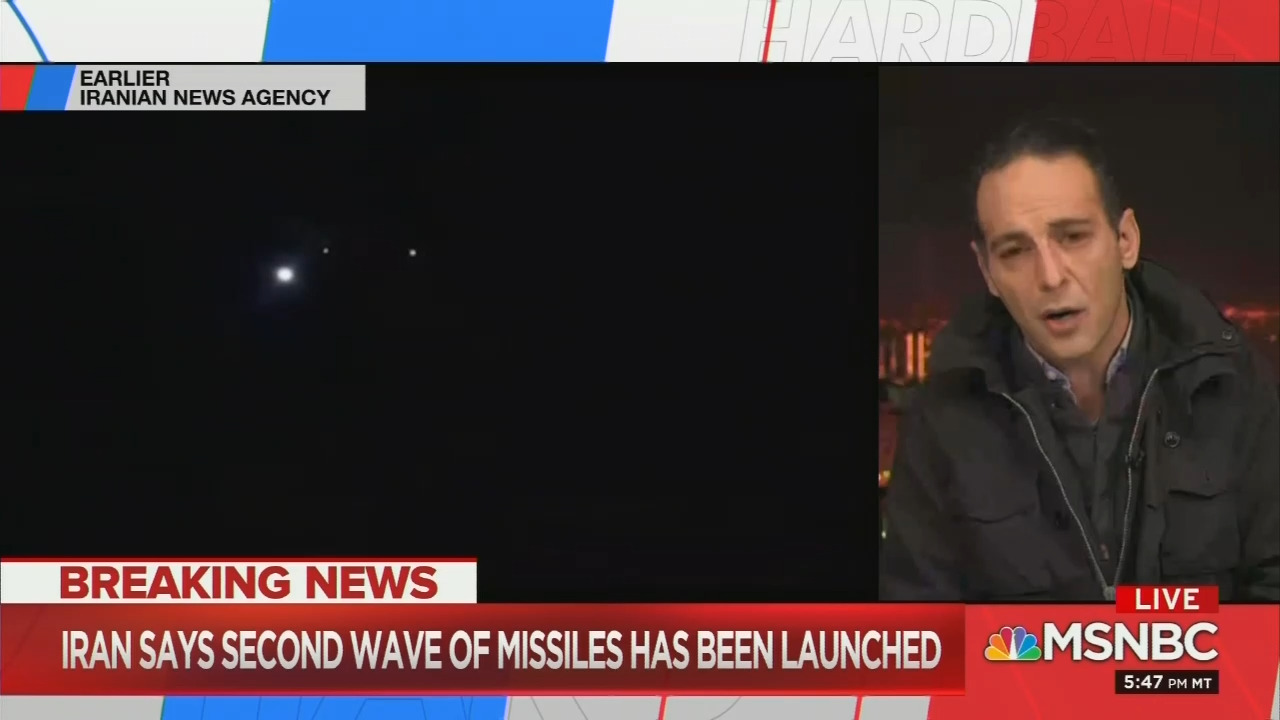 On Tuesday’s Hardball and reacting to Iran having launched missiles at an Iraqi military base housing U.S. soldiers, NBC News Tehran bureau chief Ali Arouzi likely bolstered his perch in the eyes of the Iranian regime, promoting one propaganda point after another to MSNBC host Chris Matthews. This included the utterly false claim that “30 U.S. soldiers have been killed in this attack.”