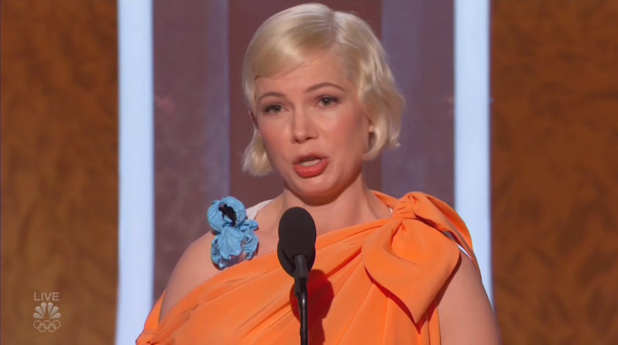 After host Ricky Gervais admonished the Golden Globes winners Sunday night not to bring up politics in their acceptance speeches because they "know nothing about the real world," actress Michelle Williams did just that with a two minute long screed supporting abortion while accepting the award for Best Actress in a Limited Series or Motion Picture Made for TV.