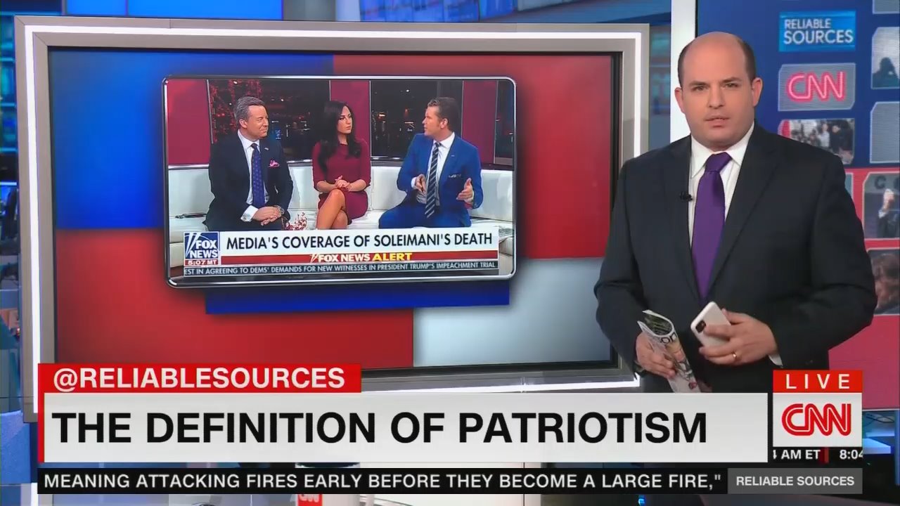The CNN show Reliable Sources is supposed to be about the state of journalism, but it always begins with a Brian Stelter commentary, a weekly call for journalists to get tougher, always tougher, on that lying President Trump. The shadow of potential war with Iran only made Stelter double down. But he insisted now that patriotism demands a tough questioning of Trump, because “lying seems to be this government’s specialty.”