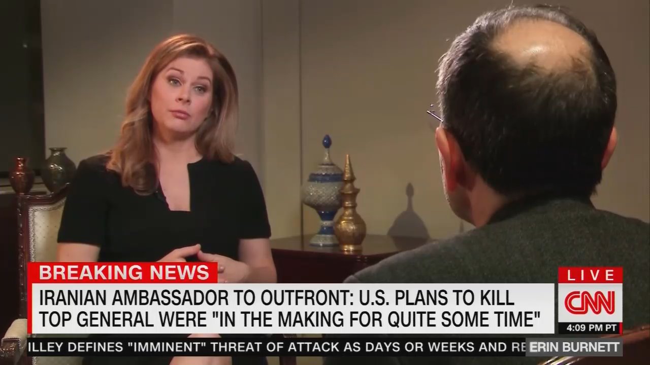 Time and again in the interview Ravanchi claimed that by killing Soleimani the US had moved from an economic war (pulling out of the Iran Deal) to a military war. But Iran has engaged in military actions against America and American interest for months now. The network that fatuously insists they are all about the facts allowed the ambassador to flat out lie to the their viewers without the least bit of resistance.