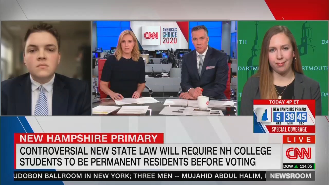 Sciutto and fellow co-host Poppy Harlow were joined by two college students — Davis Bernstein, student body president Keene State College and Jennifer West, an executive member of the board of Dartmouth Democrats — to discuss New Hampshire's voting laws, which allegedly discriminate against college voters.