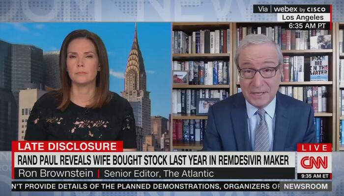 RON BROWNSTEIN: Well, that's -- that's really what makes this so striking. I mean, look, there have been no shortage of accusations of hypocrisy on both sides in responding to the pandemic. As Manu noted there have been accusations against both David Perdue and Kelly Loeffler, the former Republican senators from Georgia about -- about their stock trading during the early stages. And there -- look, there have been regular charges against the Democrats, that they -- that they are flouting the mask guidance that they offer to others. I think what makes this especially egregious is Paul has been such a relentless kind of opponent of any -- taking this seriously in terms of public health measures, masking, vaccination requirements, just the overall severity of it. And whether this was inadvertently left off his form or not, this kind of investment when contrasted against the backdrop of his kind of language about this and the kind of language that got him suspended from YouTube I think is what makes it especially striking.