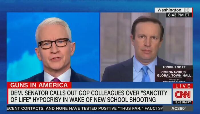 Instead, Cooper's first followup echoed some of Murphy's claims of hypocrisy by Republicans: "You focus on what you see as the disconnect between -- in the argument for the sanctity of life when it comes to abortion rights, and then, not applying it the same way to the killing of kids."