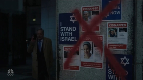 The president even had to get a restraining order against a former professor, Phillip Klein (Jason Babinsky), who threatened to kill him. When Shaw and Jalen find Klein to bring him in for questioning, he is holding anti-Israeli posters he tore down in disgust. The posters say, "From the river to the sea."